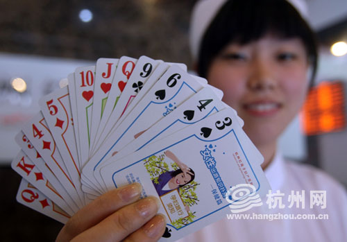 不用着急,杭州有家单位为你“未雨绸缪”,把点滴注意事项全帮大家列出了,这就是杭州红房子妇产医院别出心裁制作的“女性出游扑克”,别小看这小小的扑克,54张牌上记载的可都是极为实用的东西,从“出游安全”、“保健知识”、“防盗防骗”到“备药手册”,详细归纳了出游时要注意的大小事项,助您国庆出游“有备无患”。即日起杭州女性朋友可到体育场路286号领取。