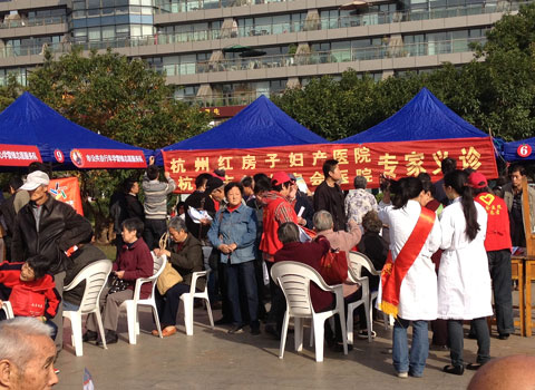 2012年11月4日上午,由杭州政协科教、文史和教文卫体委员会主办,下城区食品药品监督局与潮鸣街道党工委、办事处承办的“食品药品安全走进百姓、走进家庭”宣传活动在杭州市下城区所巷社区东园公园举行,杭州红房子妇产医院的“青春给力”志愿队受邀参加了社区妇科义诊。